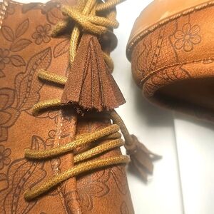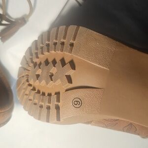 Comfoert Floral Tan Laced Ankle Boots NWOT