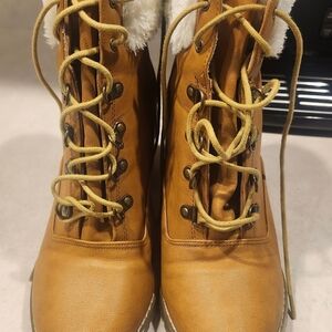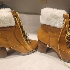 Step out in style with these chic tan ankle boots. Featuring a cozy faux fur lining, they offer both warmth and fashion. Perfect for any casual outing.