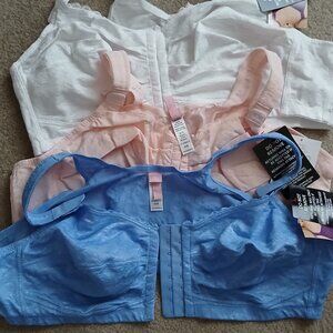 In a size 50B Set of 3 bras 1 blue,1 pink,1 white.