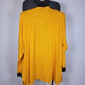 Comfort Code 3/4 Sleeve Open Cardigan Yellow White Dots Sunflower Plus 3X