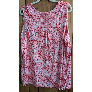 Comfort Code Top Shirt Blouse Plus Size 2X XX Tank Sleeveless Red White Cami Camisole Layers Tropical Flowers Leaves Stretch