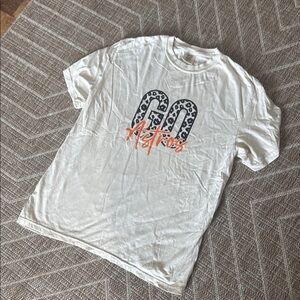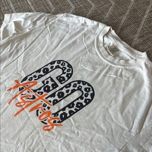 White t-shirt featuring 'Go Astros' with leopard print design. Stylish and casual.
