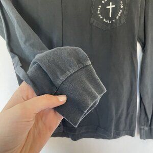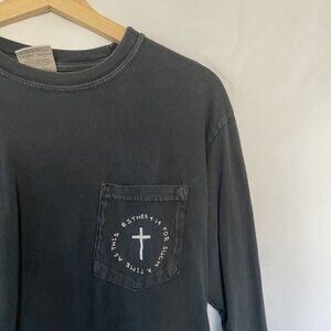 This Comfort Colors long sleeve t-shirt in charcoal features a unique Esther 4:14 graphic. Crafted for comfort, it offers a relaxed fit and soft fabric.