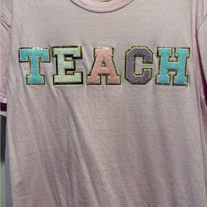 Experience the perfect blend of comfort and style with this Comfort Colors short sleeve tee in a soft pink hue. Featuring a bold 'TEACH' graphic design, this tee is crafted from high-quality cotton for a relaxed fit. Ideal for casual outings, it offers a simple yet eye-catching look.