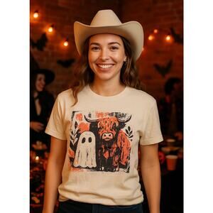 #ComfortColors #WesternGraphicTee #HighlandCow #GhostTee #RusticVibes #FallStyle #CowgirlAesthetic #FarmhouseStyle #HalloweenOutfit #FestivalReady