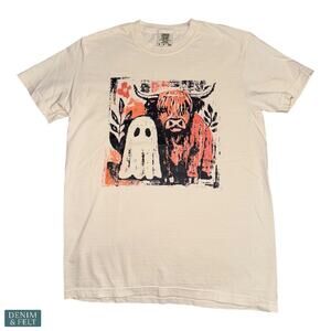 Comfort Colors Western Ghost & Highland Cow Graphic Tee Rustic Fall Vibes NWOT