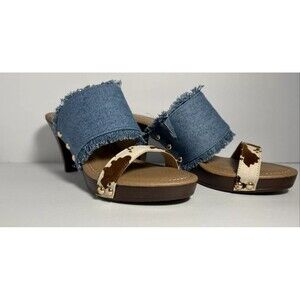 Comfort Est. 1946 Women's Sandals Blue Denim Cow Print 9M Heels Open Mules NEW