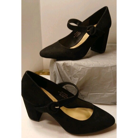 Comfort Est.1946 Womens Black Faux Suede Mary Jane Pumps Size 8 Chunky Heel