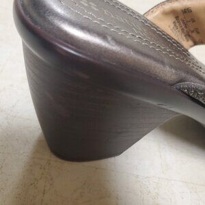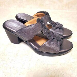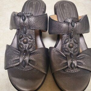 "Breslin" Like New! N5 Comfort sandal by Naturalizer. Metallic pewter with embellishments, beading. Slide, slip on style. Mid block heel. Slight platform. Adjustable velcro strap. Super lightweight! Memory foam footbed. Retail: $99