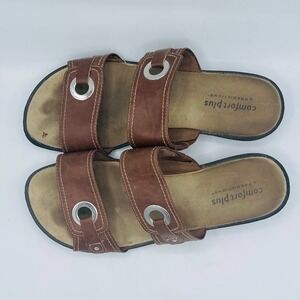 Comfortable and stylish, the Percy Slide is perfect for all-day wear! It features a tumbled upper with grommet detail, contrast stitching, and hidden gore, jersey lining, faux suede sock, a cushiony memory foam insole that cradles the foot for all-day support, 1" wedge, and a rubber outsole. Manmade materials.