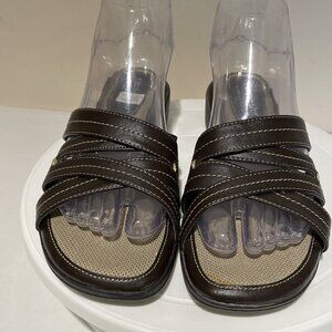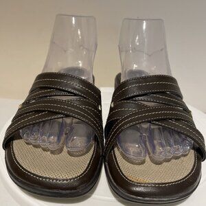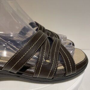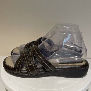 Comfort Plus Predictions Sandals Slides Women's 7 Brown Faux Leather Wedge NWOB