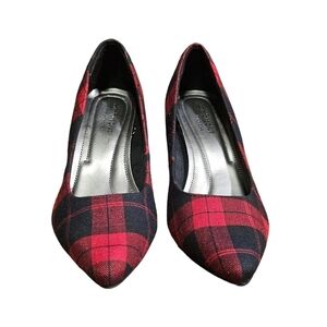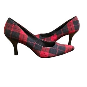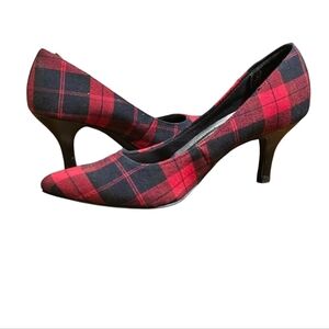 Comfort Plus by Predictions Red & Black Fabric Plaid 3in Slip-on Heels Size 7