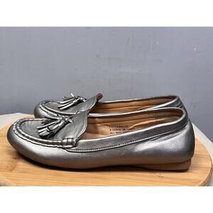Comfort View Loafer Womens size 8.5 Lottie Metallic Slip On Silver Tassel