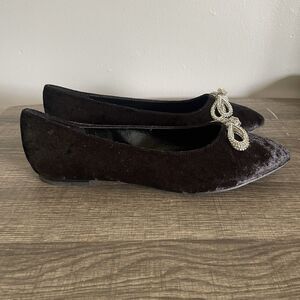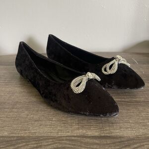 Comfort Women’s Rhinestone Bow Black Faux Velvet Ballet Flats Shoes Size 10W