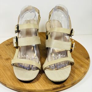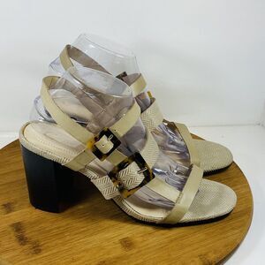Step out in style and comfort with these Comfort Women's Sandals. The strappy design and block heel make them the perfect addition to your wardrobe. The beige faux leather upper material adds a touch of elegance, while the comfort features ensure all-day wearability.