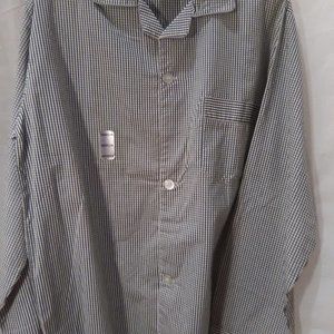 Comfort Zone Men's pajama top button up color gray/white stripe/ plaid sleepwear