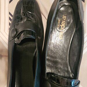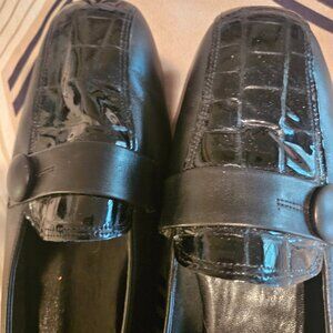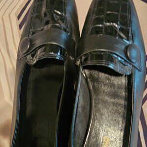 These are comfortable and retro and quality loafers. There is a patent design on the top. There is a button that gives these shoes character.
