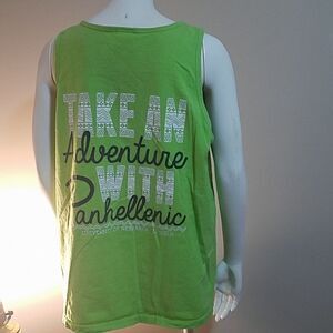 Comfort Colors Green Lincoln, Nebraska 'Take an Adventure with Panhellenic' cotton tank top.