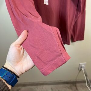 Comfort Colors red Mississippi State Bulldogs hooded long sleeve shirt.