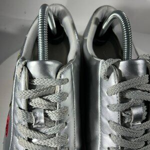 ComfortView Silver Rose Floral Womens Size 9 WW Shoes X-Wide Sneakers Embroidery