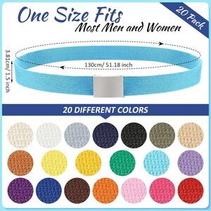 Features: A set of 20 fun, vibrant web belts with sturdy military-style metal buckles. Made of high-density canvas cotton webbing, these belts are durable, elastic, and comfortable to wear. They can be cut to your preferred length, making them super customizable. Great for quick dressing, outdoor adventures, or adding a pop of color to any outfit.