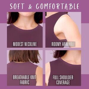 Features: Seamless, high neckline with full shoulder coverage and roomy armholes for modesty and ease of movement. Soft, stretchy, breathable fabric that moves with you. Perfect for layering or wearing alone, whether for casual, professional, or active wear.