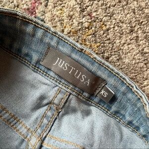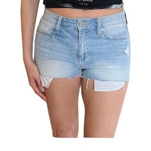 Stretch denim shorts. Light wash denim. XS fits 24-25 (my sizing as shown in pics)