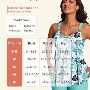 Comfortable Women's Floral Tankini Set - Ruffled Tummy Control Swimwear Size 16