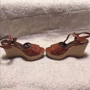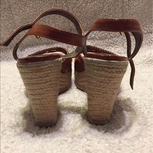 Barely worn brown wedges, very comfortable. Rope wedge and woven leather sandal, full straps.
