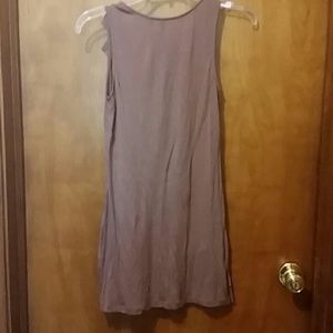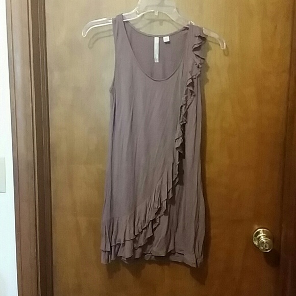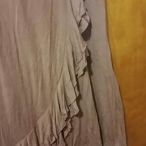 Long purple top, with ruffles that sweep from the left shoulder down to the bottom