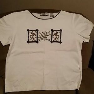 Beautifully stitched 100% cotton nice shirt for immature woman this shirt was worn twice and hand washed both times beautiful :-)