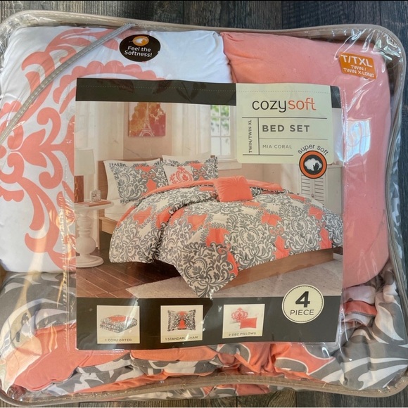 Four piece twin/twin XL comforter set! Super cute for a new dorm room decor