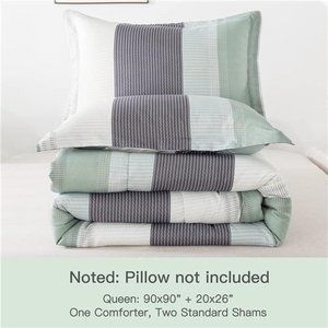 - Queen Size Down Alternative Comforter Set: 1 stripe comforter queen (90x90 inches) with corner loops (can be fixed with your duvet cover), 2 envelope pillowcases (20x26 inches). Vacuum packaging. *Due to manual cutting, pattern of pillow sham is random. The pillow insert is not included.