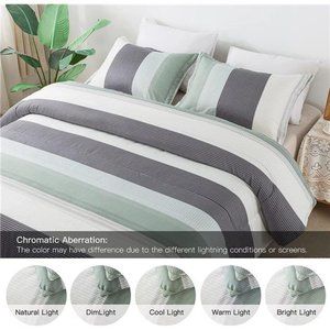 King Size Down Alternative Comforter Set: 1 stripe comforter king (104x90 inches) with corner loops (can be fixed with your duvet cover), 2 envelope pillowcases (20x36 inches).