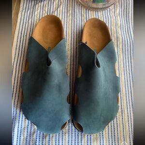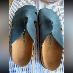 Comfortfusse Shoe 40 9.5 Blue Leather Suede Clogs Orthopedic Arch Support NEW
