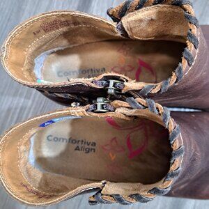 Keywords: Comfortiva Align, leather boots, weatherproof, ankle boots, zip side, women's footwear, casual boots, fashion boots, fall fashion, winter boots, comfortable shoes, brown boots