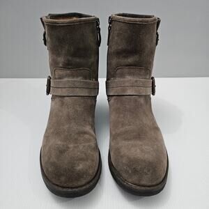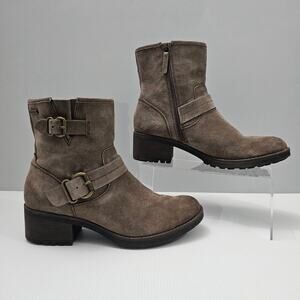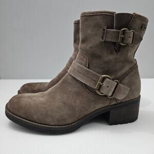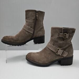 Comfortiva Barron Moto Boot Womens 10 Taupe Suede Leather Weatherproof Biker