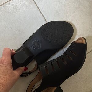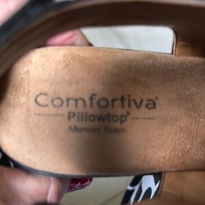 Experience all-day comfort with Comfortiva's black sandals, featuring adjustable straps for a personalized fit and a durable sole for reliable support. These stylish sandals are perfect for casual outings, offering a blend of functionality and elegance. Excellent condition. These shoes are still full price at Nordstrom.