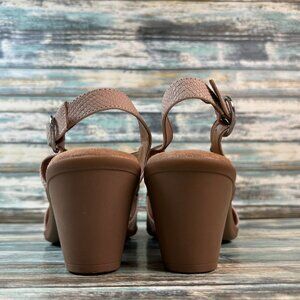 Comfortiva Slingback Sandal 11M Textured Beige Leather Katara lock Heel Open Toe.