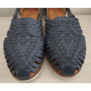 Comfortiva Women's Sz 9M Navy Rainer Leather Woven Huarache Slip-On Sandals