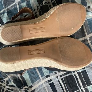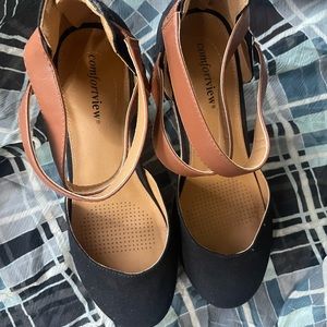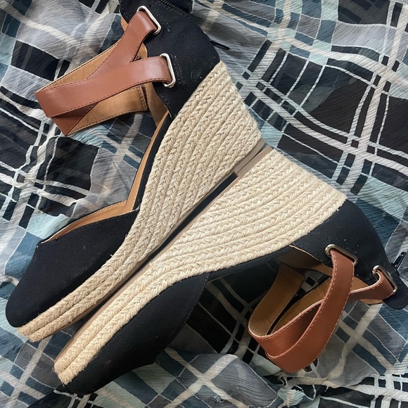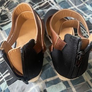 Cross at the ankle and zip in the back for a custom fit. Soft footbed, stylist, comfortable. Never worn