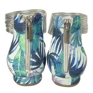 Comfortview Aylin Leaf Print Canvas Flats Sz 7.5M Silver Elastic Ankle Wrap NEW