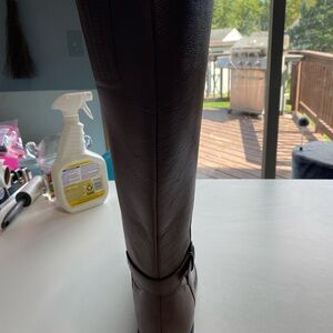 Step out in style with these elegant brown knee-high boots. Perfect for any occasion, these boots offer both comfort and sophistication. A must-have addition to your wardrobe.
