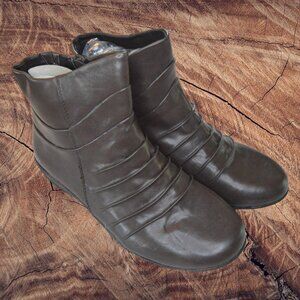 Brown wedge booties in very good condition! Some minor scuffs. Great neutral Fall shoes!
