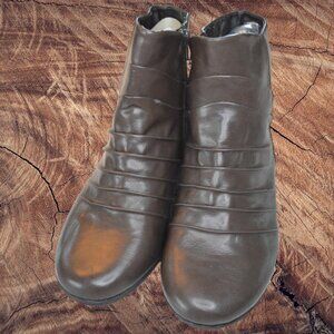 Comfortview Brown Zip Up Low Wedge Booties Size 9WW