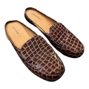 Comfortview Estelle Brown Women’s Slip On Faux Crocodile Flat Mules Sz 7.5 EUC