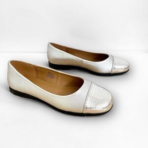 Comfortview Wide Width Fay Metallic Silver Faux Croc Embossed Toe Cap Comfort Slip Shoes On Flats, Women’s Size 10.5 W