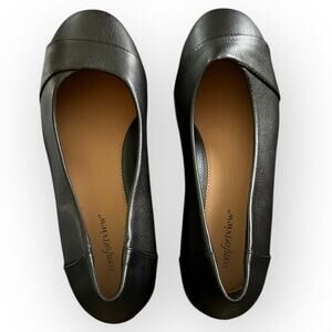 Comfortview Gab 07118 Women's Black Round Toe Slip-On Flat Ballet Flat Size 10W