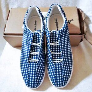 Comfortview The Bungee Slip On Sneaker Navy Gingham Size 9.5M NWT