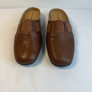 Comfortview The Sarah Womens Size 7.5Wide Brown Leather Slip On Square Toe Mules